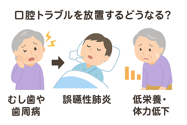 入れ歯の掃除、口の中の粘膜を拭うなど、口の中を清潔に保つ口腔ケアは命を守るのです。